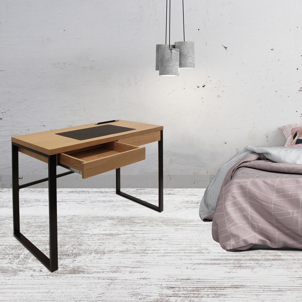 Con cajón y una almohadilla para el ordenador.