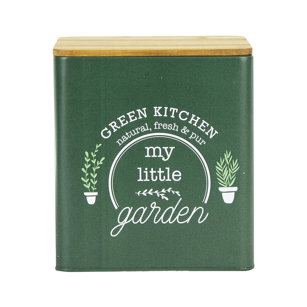 Caja de metal con tapa de bambú perfecta para almacenar.